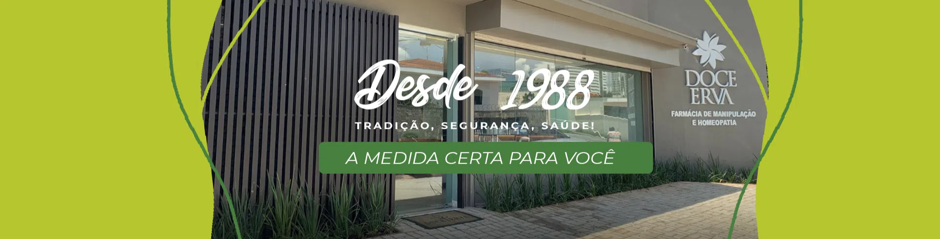 Da convivência e ideais comuns, nasceu a ideia de montarem uma farmácia, mas que fosse diferente das que já existiam. E assim, em 1988, nasceu a Doce Erva. Com dedicação, espírito empreendedor e conhecimento técnico, a Doce Erva criou, ao longo desses 35 anos, um estilo próprio de atender seus clientes, uma postura ética de contato com os prescritores, um lugar aconchegante e agradável para efetuar uma assistência farmacêutica de qualidade, agregando informação e melhoria à saúde dos pacientes.